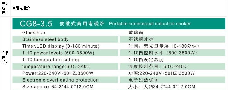 > 便携式商用电磁炉